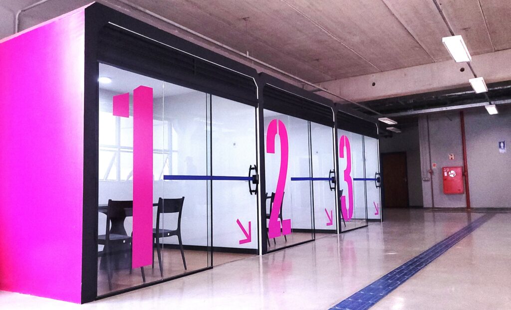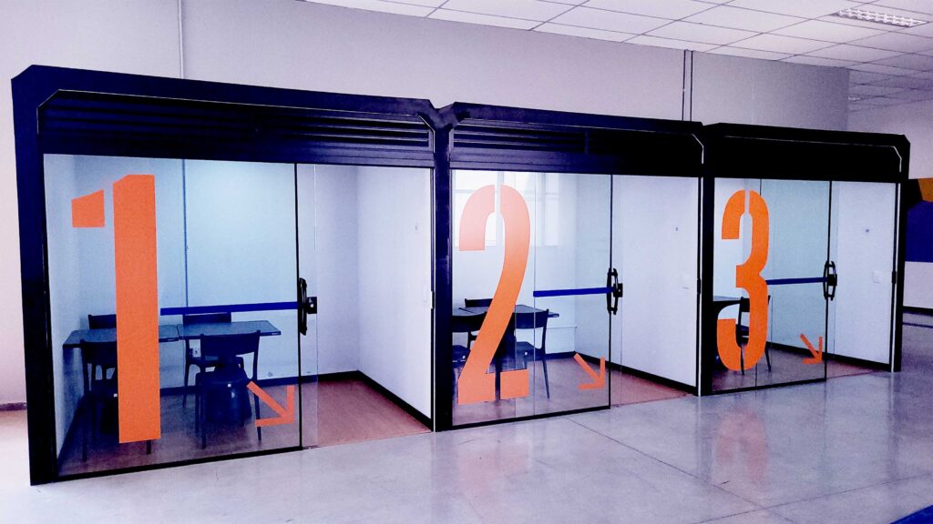 A Universidade de Sorocaba (Uniso) inaugurou, em setembro, seis espaços de coworking nos segundo e terceiro pisos do bloco F. Cada cabine conta com duas mesas e quatro cadeiras, além de iluminação com sistema de ventilação interligado e tomadas.