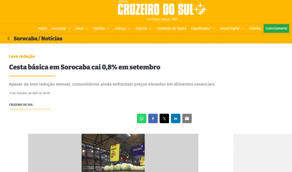 Cesta básica em Sorocaba cai 0,8% em setembro