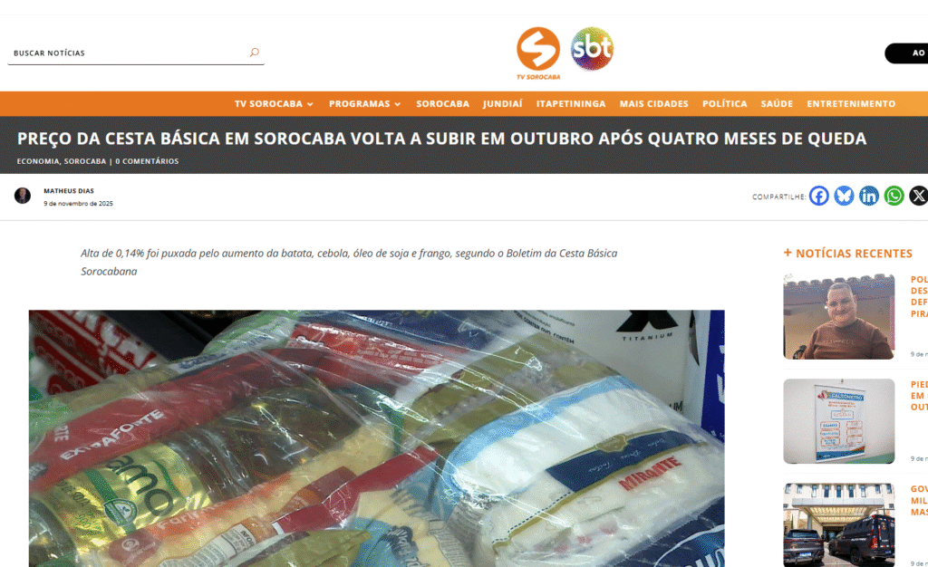 Preço da cesta básica em Sorocaba volta a subir em outubro após quatro meses de queda