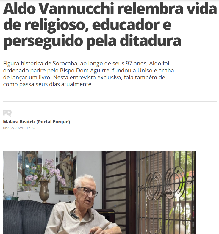 Aldo Vannucchi relembra vida de religioso, educador e perseguido pela ditadura