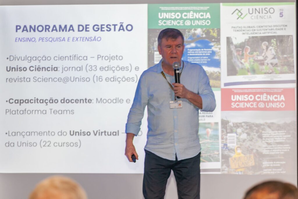 Na reunião, Profeta fez uma apresentação com um balanço de sua gestão e todos os projetos que foram colocados em prática na Uniso, durante o período.