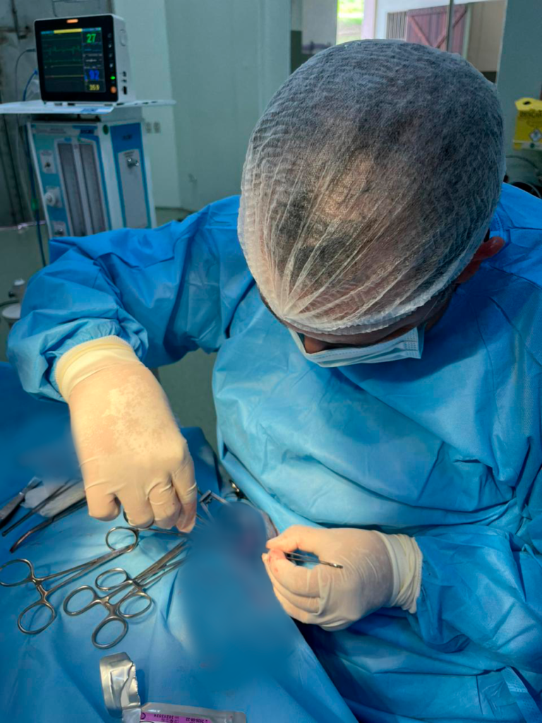 De acordo com o professor, após uma anestesia geral inalatória, e assessorado pela equipe da Clínica Veterinária Universitária da Uniso, o veterinário. Ortiz realizou a cirurgia de remoção da massa, sem nenhuma intercorrência. A cirurgia contou com o auxílio do professor Castro, da anestesiologista Carolina Trebejo, e da equipe assistente composta pelas médicas veterinárias Júlia Kocks e Giulia Bento.