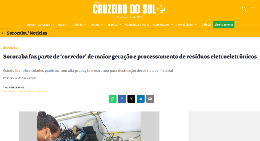 Sorocaba faz parte de ‘corredor’ de maior geração e processamento de resíduos eletroeletrônicos