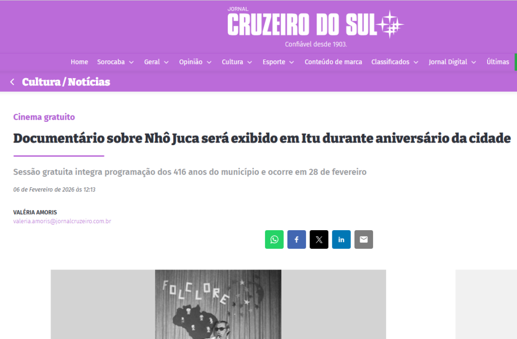 Documentário sobre Nhô Juca será exibido em Itu durante aniversário da cidade