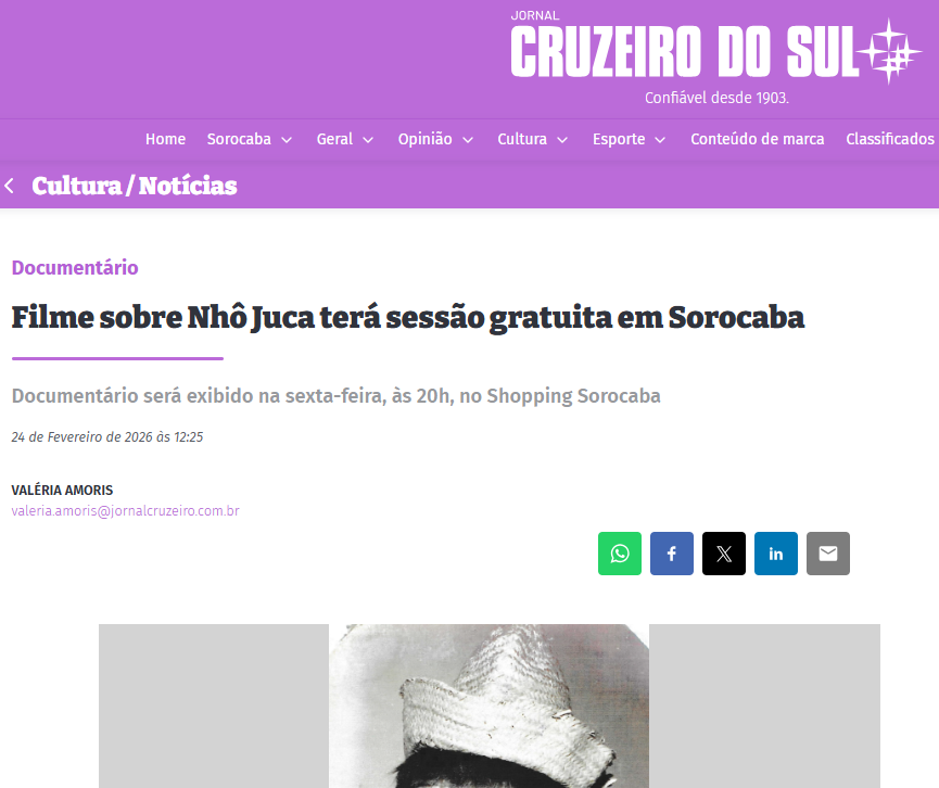 Filme sobre Nhô Juca terá sessão gratuita em Sorocaba