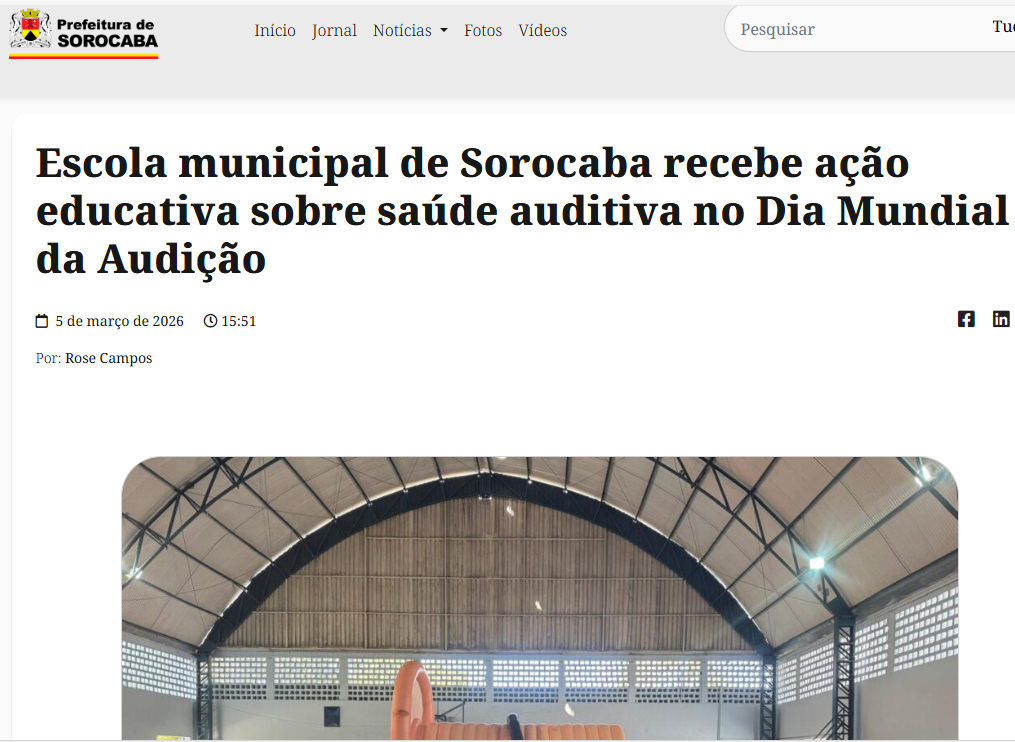 Escola municipal de Sorocaba recebe ação educativa sobre saúde auditiva no Dia Mundial da Audição