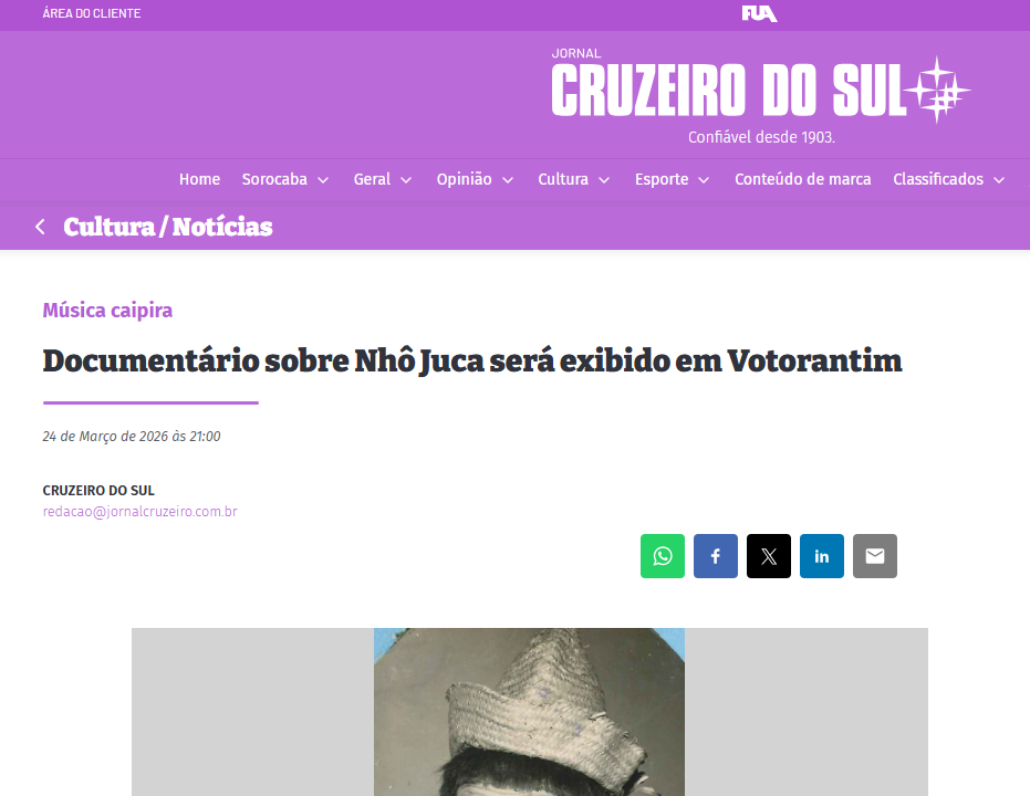 Documentário sobre Nhô Juca será exibido em Votorantim