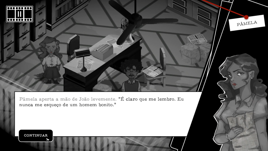 Eight, que além de roteirista é artista 2D, conta que o Acrônimo Tupiniquim é um jogo de mistério narrativo ambientado em uma atmosfera inspirada nos filmes noir, no Brasil dos anos 1950 e na cultura pop contemporânea. “Na trama acompanhamos Helen, a empregada de Patrício Jânio, o maior detetive dos trópicos e o maior pilantra da cidade. Acusada pela morte do patrão, Helen precisa provar sua inocência contando somente com a ajuda de João, antigo advogado de Patrício Jânio. O jogo combina narrativa investigativa, enigmas e exploração, com estética visual autoral” detalha.